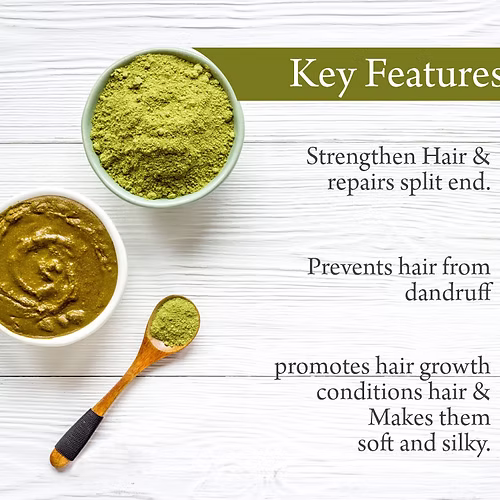 Pure Henna with added herbals like Amla. Shikakai. Bhringraj & Neel Leaf (Indigo Leaves Powder).