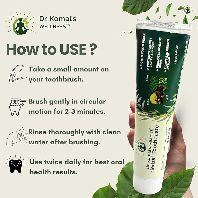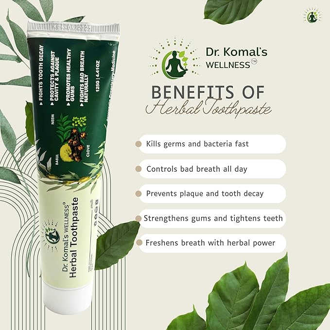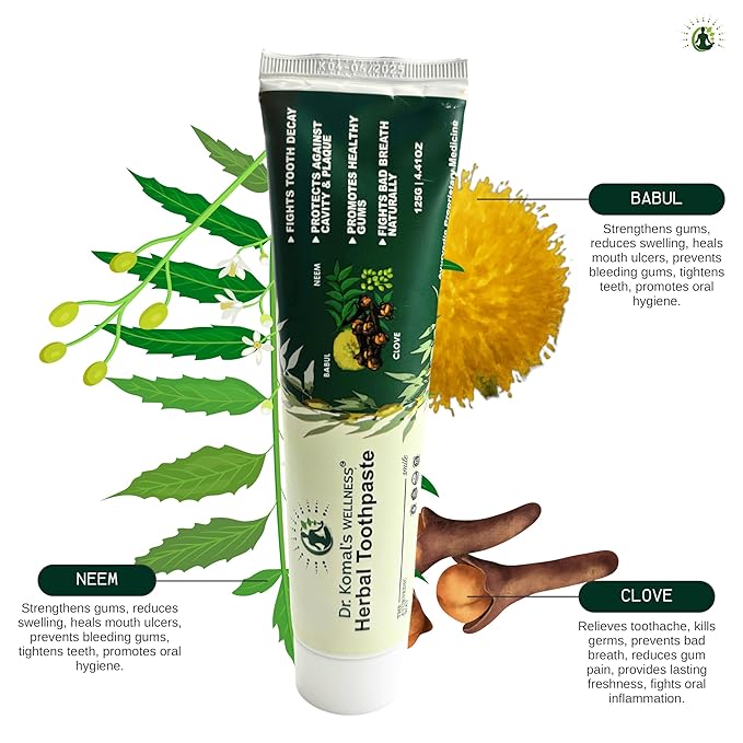 Herbal Toothpaste is a powerful blend of natural herbs like neem, babul. and clove that promote oral hygiene and fresh breath. It fights tooth decay strengthens gums and prevents cavities and plaque formation. This ayurvedic formula is free from harsh chemicals and ideal for maintaining strong teeth and healthy gums.